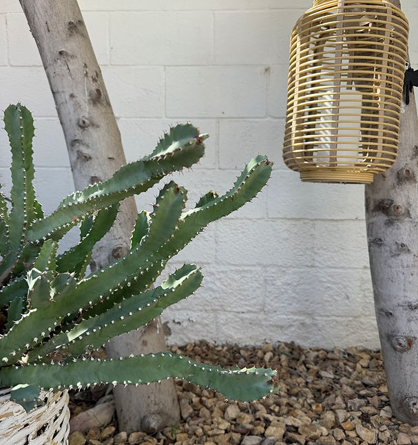 Lastly comes the match between the plant and the design movement we know as mid-century modernism. By the 1950s, the "clean lines" and geometric structure of Euphorbia resinifera became highly desirable for the burgeoning architectural movement in Palm Springs. Its low-maintenance, sculptural "mound" shape fit the minimalist aesthetic perfectly, transitioning it from a botanical specimen to a staple of California residential design.